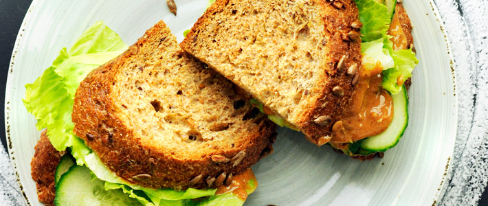 Place a second spread of bread on top of the lettuce, press a little and cut in half.